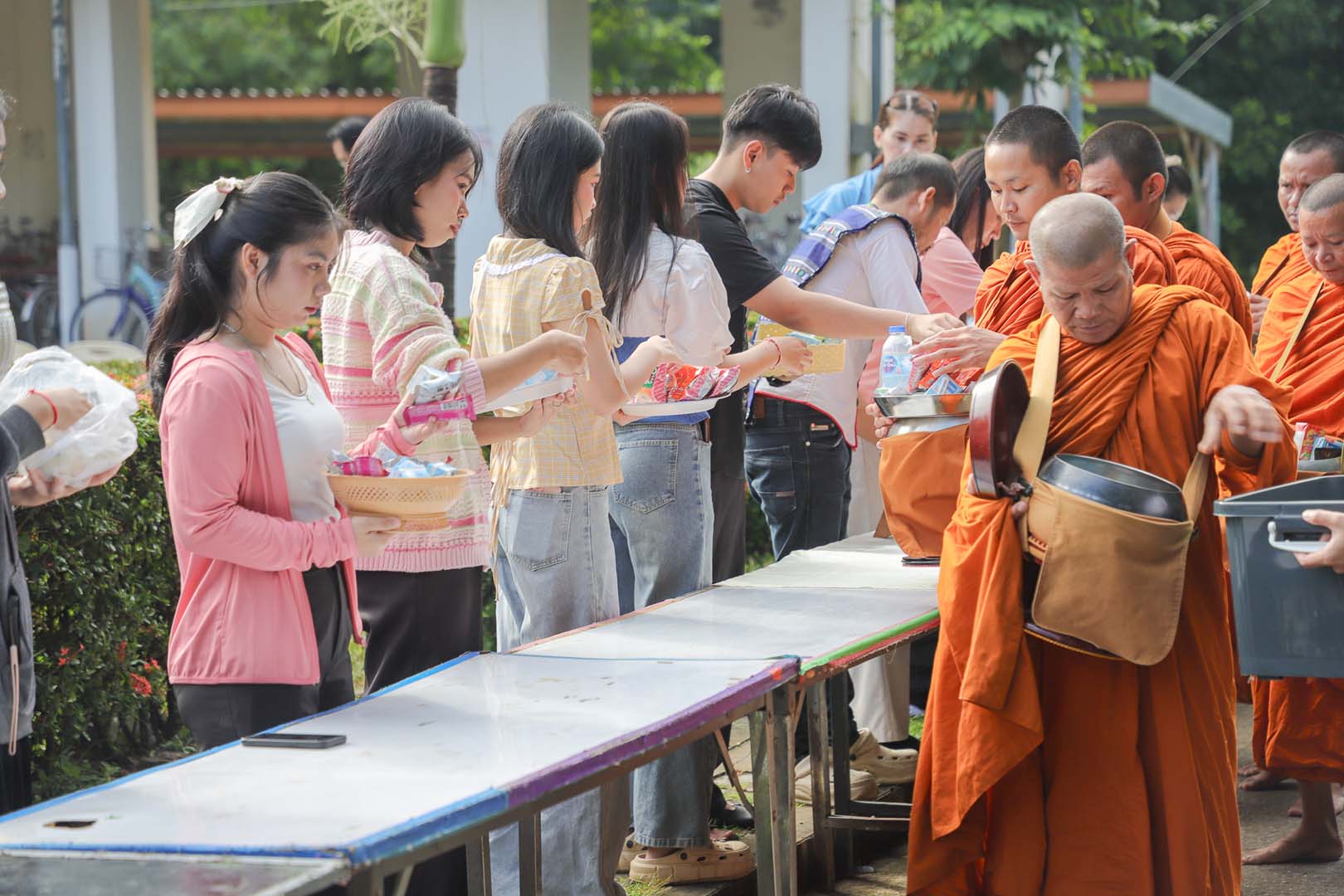 ดร.ปัญญา เถาว์ชาลี รองคณบดีงานกิจการนักศึกษา พร้อมด้วยบุคลากร และนักศึกษา ได้เข้าร่วมทำบุญตักบาตรหอพักสวัสดิการนักศึกษา ประจำปี 2568 มหาวิทยาลัยกาฬสินธุ์ (พื้นที่นามน)