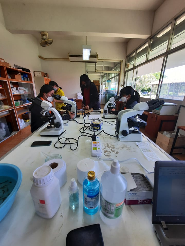 ฝึกปฏิบัติการตรวจโรคปลานิลในรายวิชาโรคและปรสิตสัตว์น้ำ