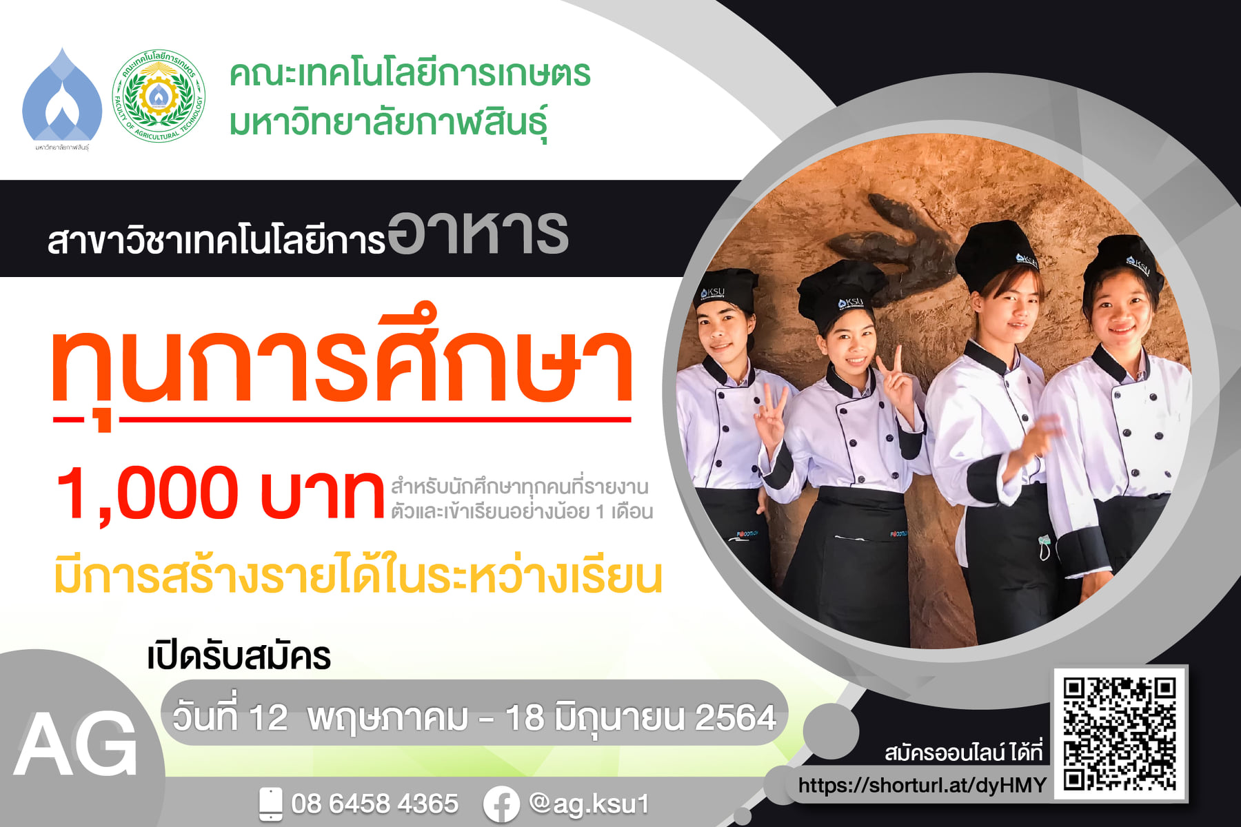 ทุนสนับสนุนการศึกษา สาขาวิชาเทคโนโลยีการอาหาร ประจำปีการศึกษา 2564