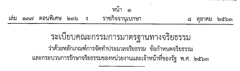 ระเบียบคณะกรรมการมาตรฐานทางจริยธรรม ว่าด้วยหลักเกณฑ์การจัดทำประมวลจริยธรรม ข้อกำหนดจริยธรรม และกระบวนการรักษาจริยธรรมของหน่วยงานและเจ้าหน้าที่ของรัฐ พ.ศ. 2563