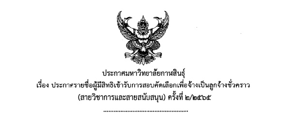 ประกาศมหาวิทยาลัยกาฬสินธุ์ เรื่อง ประกาศรายชื่อผู้มีสิทธิเข้ารับการสอบคัดเลือกเพื่อจ้างเป็นลูกจ้างชั่วคราว (สายวิชาการและสายสนับสนุน) ครั้งที่ 2/2565