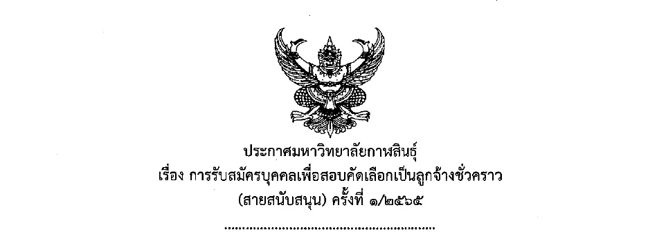 ประกาศมหาวิทยาลัยกาฬสินธุ์ เรื่อง การรับสมัครบุคคลเพื่อสอบคัดเลือกเป็นลูกจ้างชั่วคราว (สายสนับสนุน) ครั้งที่ 1/2565