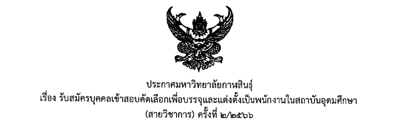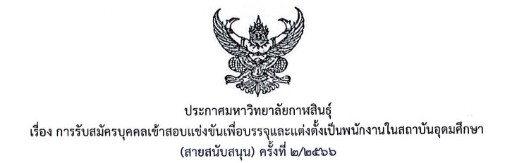 ประกาศมหาวิทยาลัยกาฬสินธุ์ เรื่อง รับสมัครบุคคลเข้าสอบแข่งขันเพื่อบรรจุและแต่งตั้งเป็นพนักงานในสถาบันอุดมศึกษา (สายสนับสนุน) ครั้งที่ 2/2566
