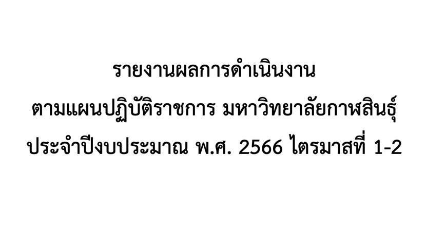 รายงานผลการดําเนินงาน ตามแผนปฏิบัติราชการ มหาวิทยาลัยกาฬสินธุ์ ประจําปีงบประมาณ พ.ศ. 2566 ไตรมาสที่ 1-2