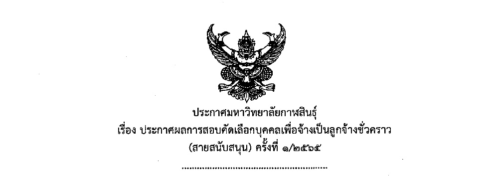 ประกาศมหาวิทยาลัยกาฬสินธุ์ เรื่อง ประกาศผลการสอบคัดเลือกบุคคลเพื่อจ้างเป็นลูกจ้างชั่วคราว (สายสนับสนุน) ครั้งที่ 1/2565
