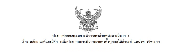 ประกาศคณะกรรมการพิจารณาตำแหน่งทางวิชาการ เรื่อง หลักเกณฑ์และวิธีการเพื่อประกอบการพิจารณาแต่งตั้งบุคคลให้ดำรงตำแหน่งทางวิชาการ