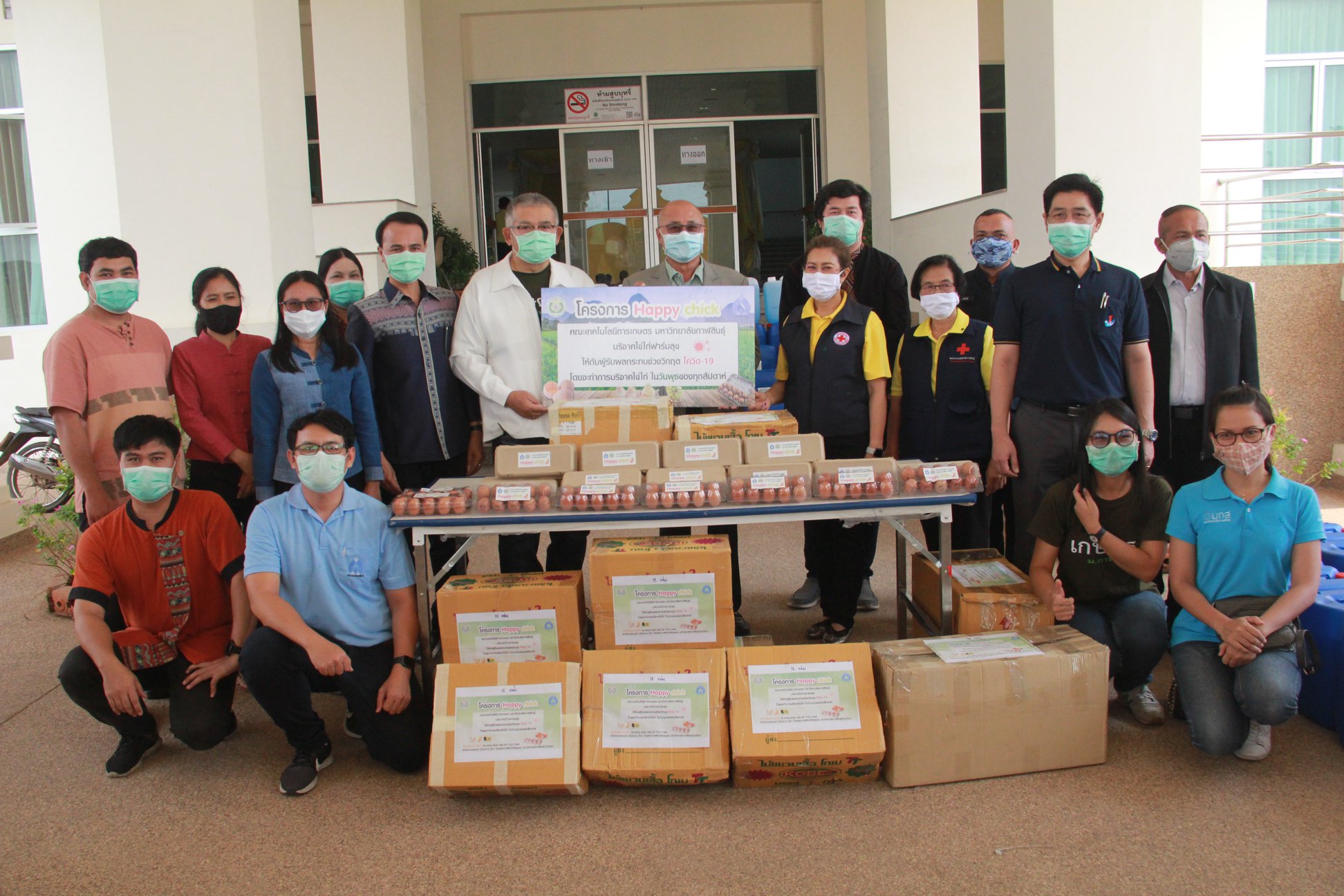 อธิการบดี ม.กาฬสินธุ์ นำคณะผู้บริหาร คณาจารย์ บุคลากร และนักศึกษา ส่งมอบไข่ไก่ฟาร์มสุข ไข่ไก่ Happy chick